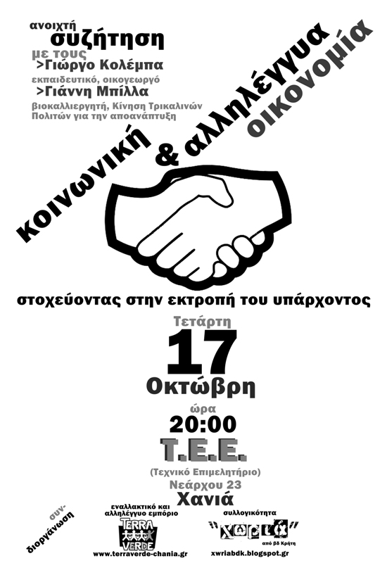 Η Συλλογικότητα "χωριά" από ΒΔ Κρήτης κι η Terra Verde - Συλλογικότητα για το εναλλακτικό κι αλληλέγγυο εμπόριο συνεχίζουν τον δημόσιο διάλογο για τα χαρακτηριστικά της κοινωνικής & αλληλέγγυας οικονομίας