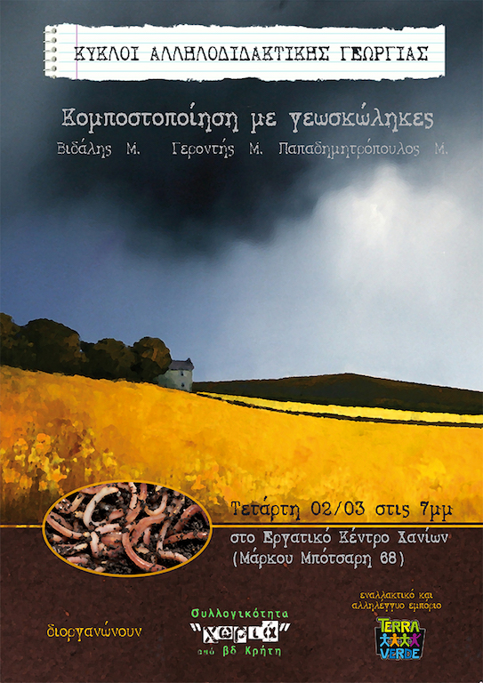 Η συλλογικότητα ''χωριά'' από β.δ. Κρήτη και η συλλογικότητα για το εναλλακτικό και αλληλέγγυο και εμπόριο "Terra Verde" (Γη Πράσινη) από τα Χανιά παρουσιάζουν μια καινοτόμο πρόταση μάθησης και αλληλεπίδρασης για επαγγελματίες και ερασιτέχνες γεωργούς τους ''ΚΥΚΛΟΥΣ ΑΛΛΗΛΟΔΙΔΑΚΤΙΚΉΣ ΓΕΩΡΓΙΑΣ''.